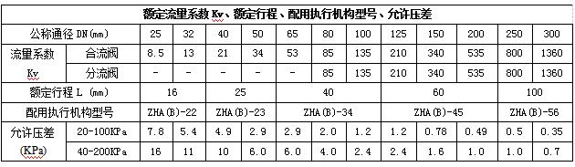 注:允許壓差確定依據(jù):1)標(biāo)準(zhǔn)彈簧;2)上閥芯或下閥芯關(guān)閉。