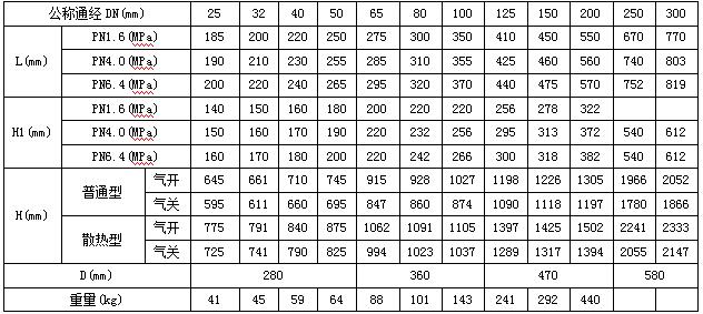 注:表格中L、H1為標(biāo)準(zhǔn)值,H、D和重量為參考值
