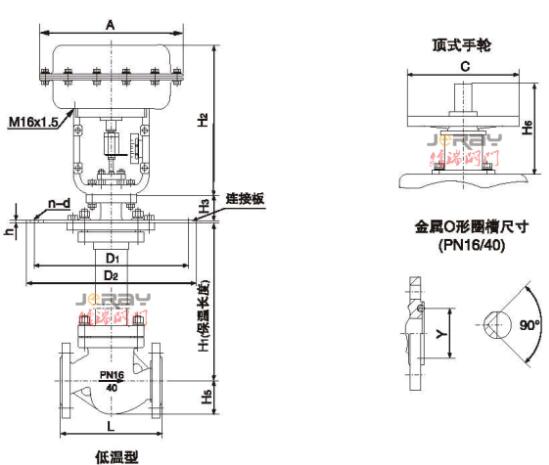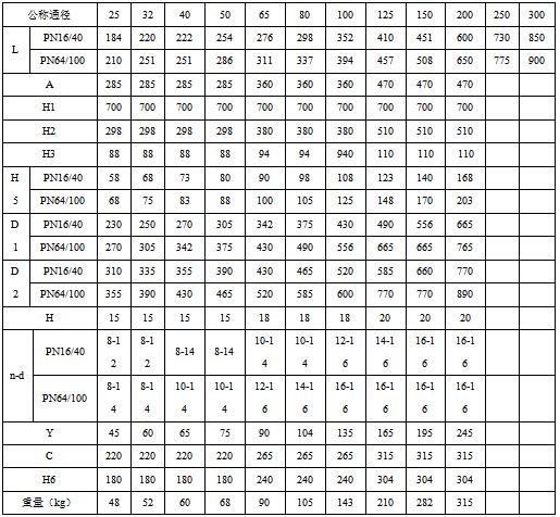 注:1、保溫長(zhǎng)度以700mm為例,表中重量為PN16數(shù)據(jù),可以安裝側(cè)裝式手輪